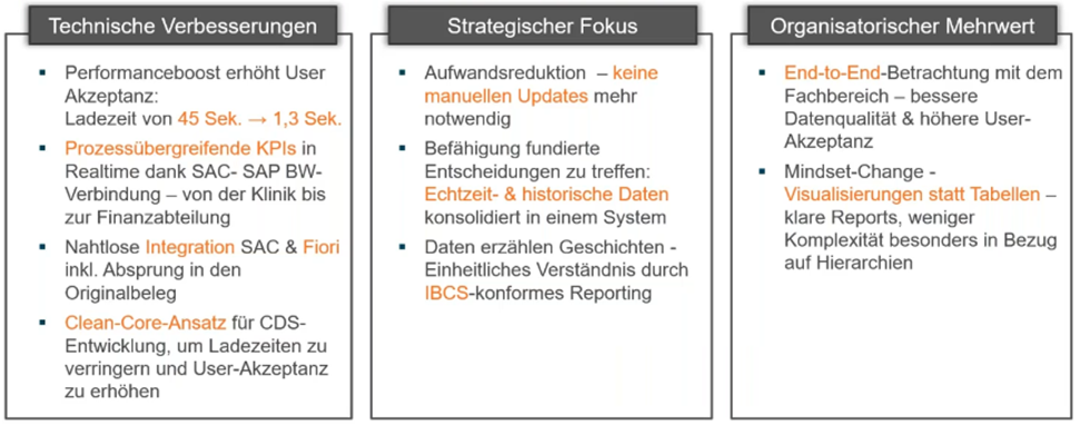 Praxisbeispiel: Unser Kunde Asklepios Kliniken konnte mit SAC sein Reporting vereinheitlichen, Medienbrüche umgehen und schnellere Entscheidungen treffen.